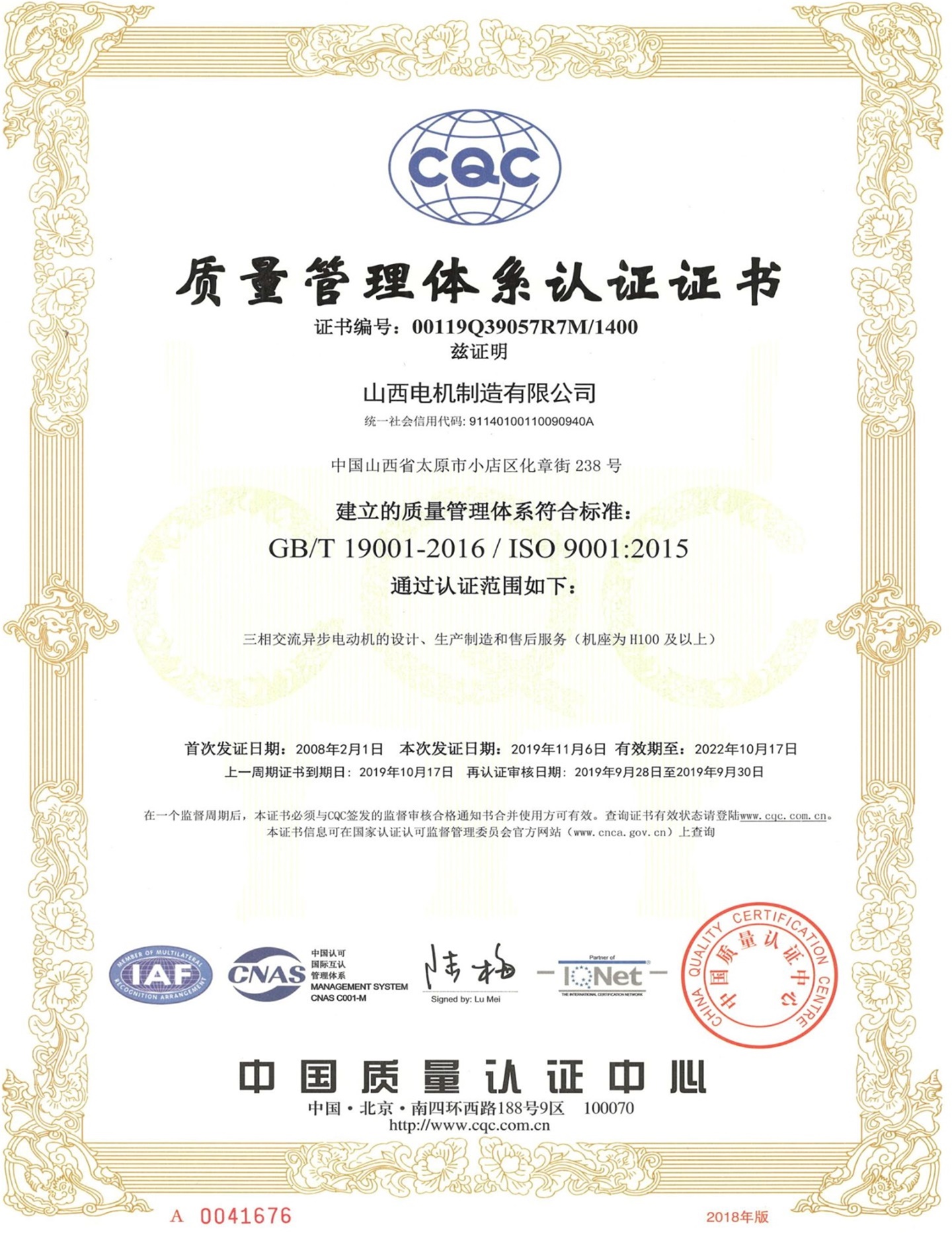 山西電機制造有限公司是一家具有70多年歷史,專業研發(fā)制造三相異步電動機的老牌國有企業,注冊資金26250萬元,現有在崗職工一千余人。2014年5月完成整體搬遷改造,現址位于太原市小店區化章街238號,新增設備投資約5個億,整體裝備水平得到大幅提高。公司深度融合技術創(chuàng)新與精工制造,成功躋身"國家級高新技術企業"行列,并榮獲"省級專精特新中小企業"認證。作為中國電器工業協會中小型電機分會副理事長單位,公司持續(xù)踐行質量強企戰(zhàn)略,相繼獲評國家級AAA企業信用等級、山西省"守合同重信用"企業,榮膺"中國最具影響力品牌企業"稱號。通過了質量管理體系、環(huán)境管理體系、職業健康安全管理體系認證,以及能源管理與知識產權管理體系認證。產品憑借卓越品質斬獲"山西省名牌產品"殊榮,在行業內樹立起極具辨識度的品牌標桿,贏得市場廣泛認可與信賴。